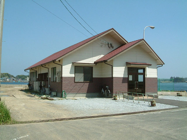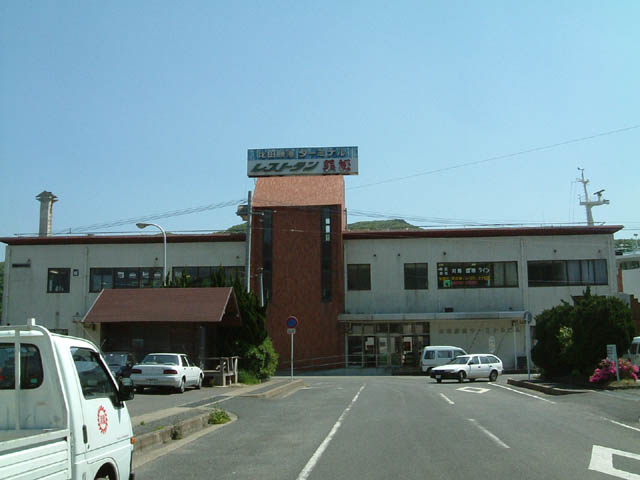 | で、これが「国際ターミナル」です。 なんだか、水産加工会社の事務所か、悪く言えば物置のような建物なのですが… 見ての通り、小さな建物でありますが、中には、空港や博多港と同じ、出入国検査場があります。 しかし、この建物には、出入国検査場と、小さな待合室以外に、何もありません。 #それはそうと「国際ターミナル」という看板がどこにもないので、戸惑いました。