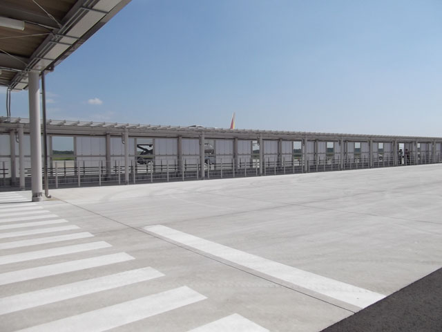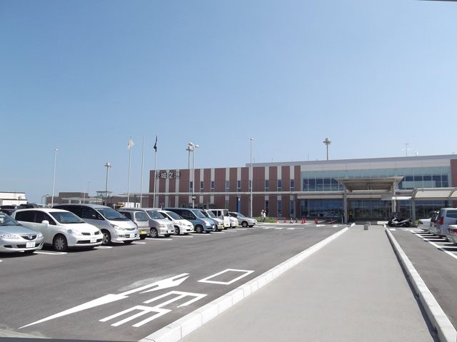 | 茨城空港に着くと…駐車場に、次々と車が入っていきます。ターミナル前には誘導員も立ってました。 |