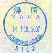 | 那覇港は、通常では「入国」のスタンプしか得ることができません。 有村産業のフェリーが、台湾の基隆または高雄から入港するだけです。(台湾行きのフェリーは、那覇から乗船しても、すべて石垣港で出国手続きになります) 那覇までの道(乗船記)はこちら参照