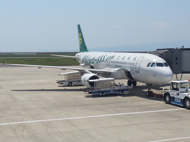 | この時期は「チャーター便しか就航していない空港」でしたが、ほぼ定期的に発着していることと、近々定期便へ変更予定とのことで、対象としました。 ま、別に目立ったところのない一般的な「地方の国際線就航空港」でしたが…(国際線と国内線の手荷物検査(搭乗待合室まで)が共通のパターン) 春秋航空についての感想をば。 |